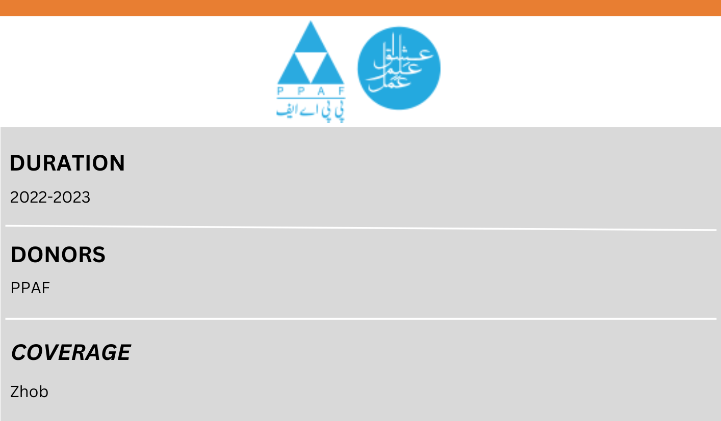 The Olive Processing Plant project is being implemented in those union councils of district Zhob, where the environment is highly suitable for olive plantations. The project aims to enhance sustainable and resilient livelihood opportunities to help households graduate out of poverty. The Olive Processing Plant aims to enhance the capacity of local olive farmers to enter into partnership as a key stakeholder in the olive sector. The most important parts of the project are planting olive trees, training of Community Resource Persons and farmers to manage olive processing plant, building infrastructure and provision of tools.